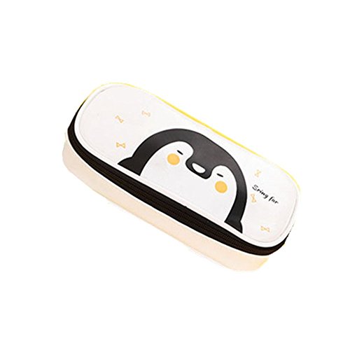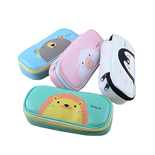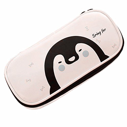 Funnylive Large Capacity Student Pencil-box Fashion Cute Animals PU Pencil Holders (White)