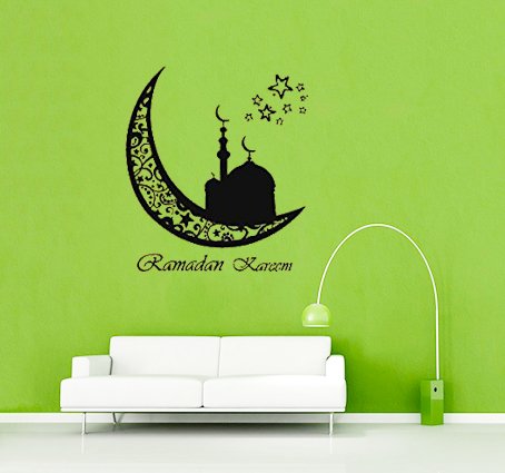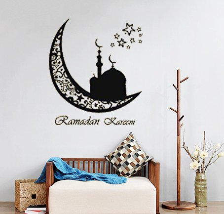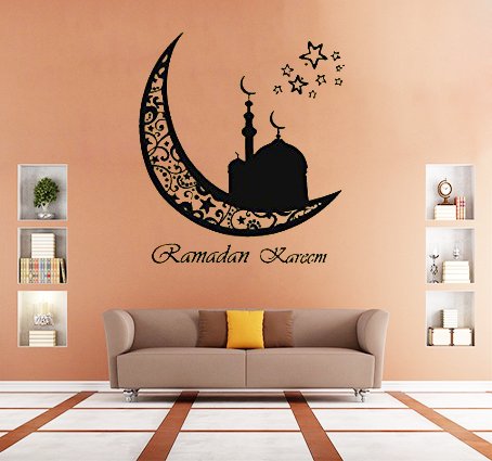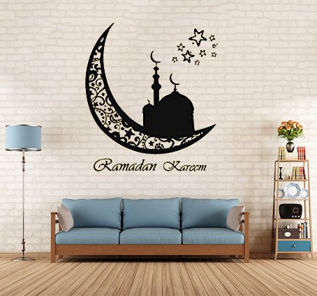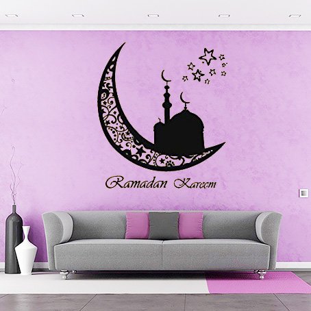 Moon Vinyl Wall Sticker Ramadan Kareem Islam Muslim Decals Arabic Decor Removable Art (22''x24'',Black)