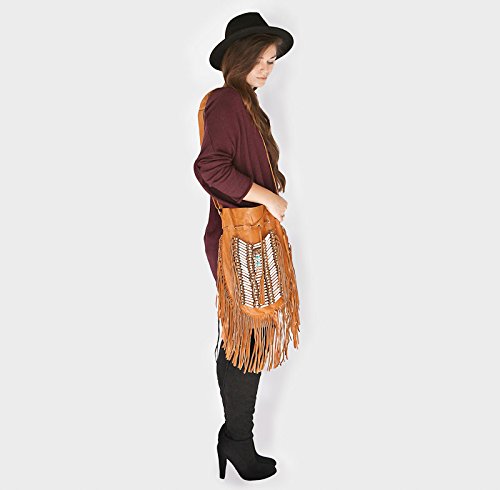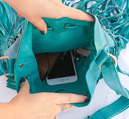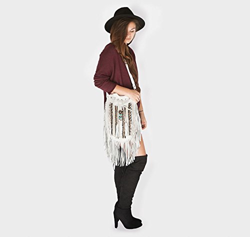 -. Brand : BohoBags Official -. Department : womens -. Feature : Perfectly Sized. Boho Vibes Guaranteed. / Extremely soft real leather. Adjustable shoulder strap. / Pouch style with zip closure. Perfect for daily activities as well as vacation (and fits all your necessities). / Decorated with embellishments and gorgeous fringes. / Measurements: ~55cm high (with tassels), ~33cm wide. -. ProductGroup : Shoes -. ProductTypeName : HANDBAG -. Title : Boho Bag Round L | Real Leather | Fringe Purse | Bohemian Bags