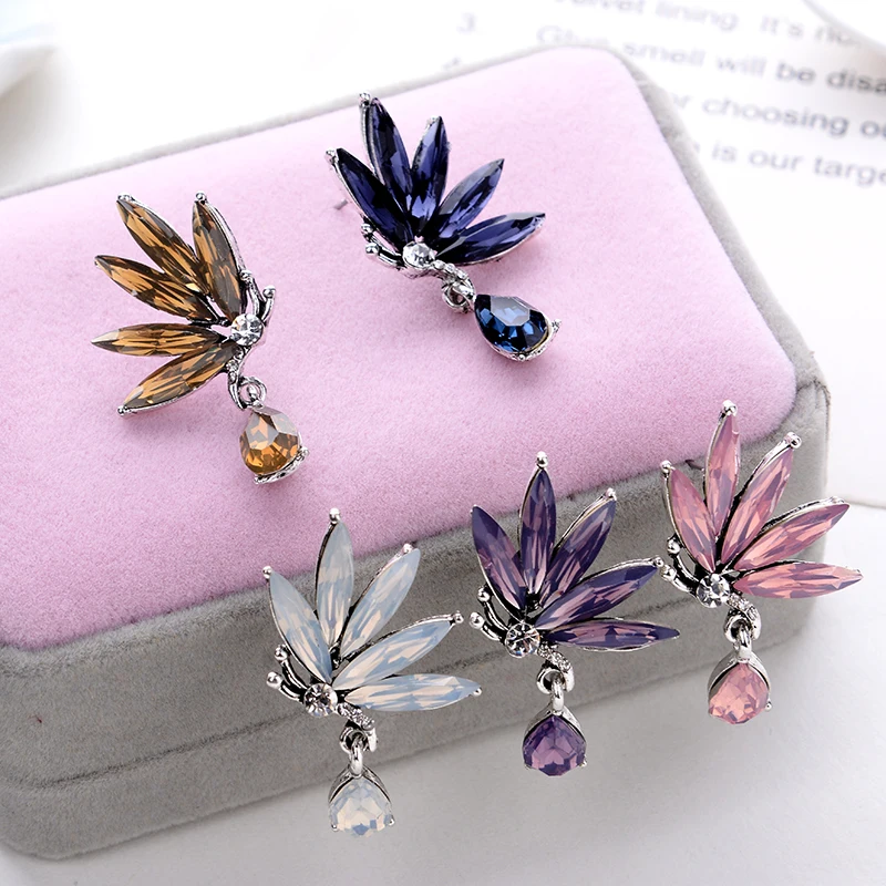 Item:Opal Stone Rhinestone Decoration Long Chain Pendant Stud Earrings