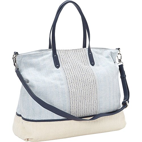 A casual Splendid tote in a two-tone weave. A magnetic snap closes the top. Lined interior with 2 patch pockets and 1 zip pocket. Skinny handles and optional shoulder strap.