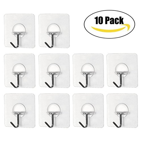 FICBOX 10Pack Adhesive Wall Hook Transparent Heavy Duty 16lb Reusable Hooks For Living Room, Bedroom, Kitchen and Bathroom- Nail Free and Self Adhesive -No Scratch, Waterproof and Oilproof