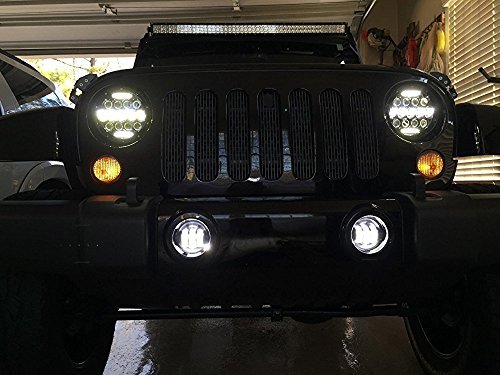 7'' Black 75w LED Driving Headlights with DRL+ 4 Inch LED Front Fog Lights for Jeep 97-2017 JK TJ LJ