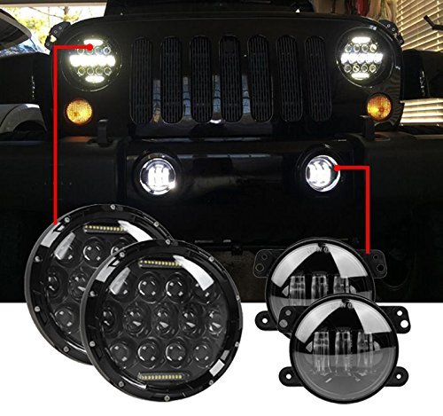 Package included: 2pcs 7 inch LED headlights+ 2pcs H4 to H13 adapter for headlight+ 2pcs 4 Inch led fog lamps+ 2pcs 9005/9006-5202(H16) Conversion Wiring adapter for fog lights.