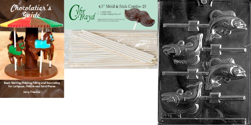 Cybrtrayd 'Fish Lolly' Nautical Chocolate Candy Mold with 25 4.5-Inch Lollipop Sticks and Chocolatier's Guide