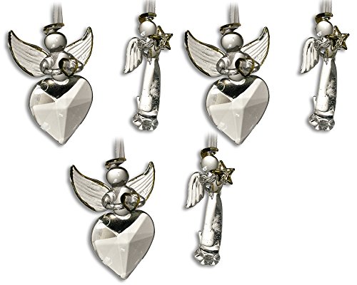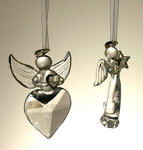 -. Binding : Kitchen -. Brand : Banberry Designs -. Color : Clear -. Feature : Set of Clear Crystal Glass Angel Christmas Ornaments / Angel holding star and another holding a heart. / UNIQUE GIFT IDEA for mom, grandma, sister or friend for Christmas. Nice gift for anyone who loves angels. BEAUTIFULLY GIFT BOXED: comes in a reusable box for storage after the holidays. / Features white satin ribbon for hanging. / SIZE: each approx. 2.75"H x 2"W - perfect size and weight for a Christmas tree -. Label : Banberry Designs -. Manufacturer : Banberry Designs -. ProductGroup : Home -. ProductTypeName : HOME -. Publisher : Banberry Designs -. Size : 2.75 Inch -. Studio : Banberry Designs -. Title : Crystal Glass Angel Ornaments with Gold Accents - Set - Christmas Ornament - Holiday Decorations Christmas Tree Ornaments Xmas Angel Wings - Gift