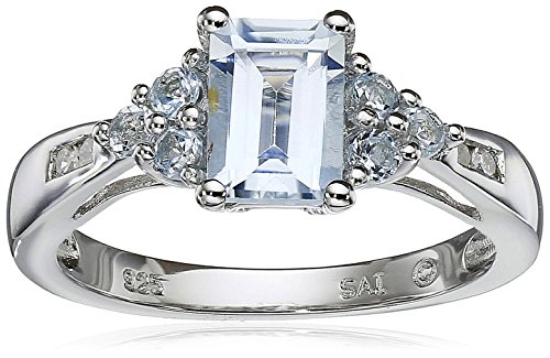 A breathtaking octagon-shaped aquamarine stone creates the sparkling blue center of this gemstone and diamond-accented ring. Patterns of blue topaz and diamond rounds increase the ring's eye-catching and alluring finish.