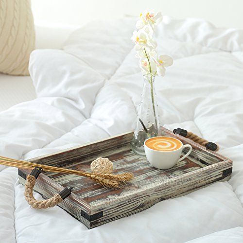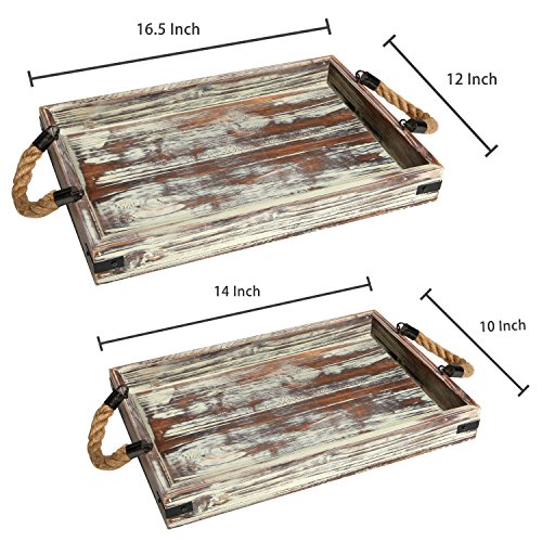 Set of 2 Country Rustic Wood Nesting Serving Trays with Rope Handles