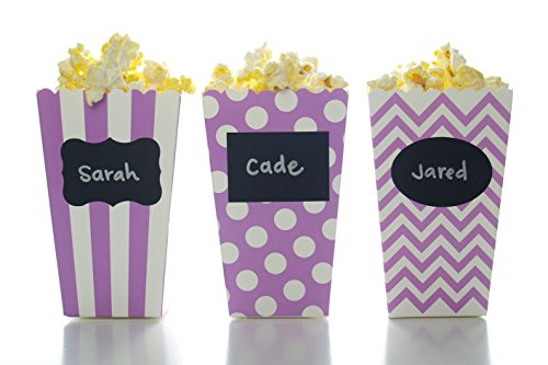 Purple Popcorn Boxes & Black Label Chalkboard Vinyl Stickers (36 Pack) - Lavender Wedding Favor Boxes, Use Decal Tag to Make Personalized Birthday...