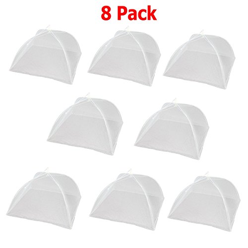 EVINIS Large White Pop Up Mesh Screen Food Cover - Keep Out Flies, Bugs, Mosquitos - Reusable and Collapsible (Pack of 8)