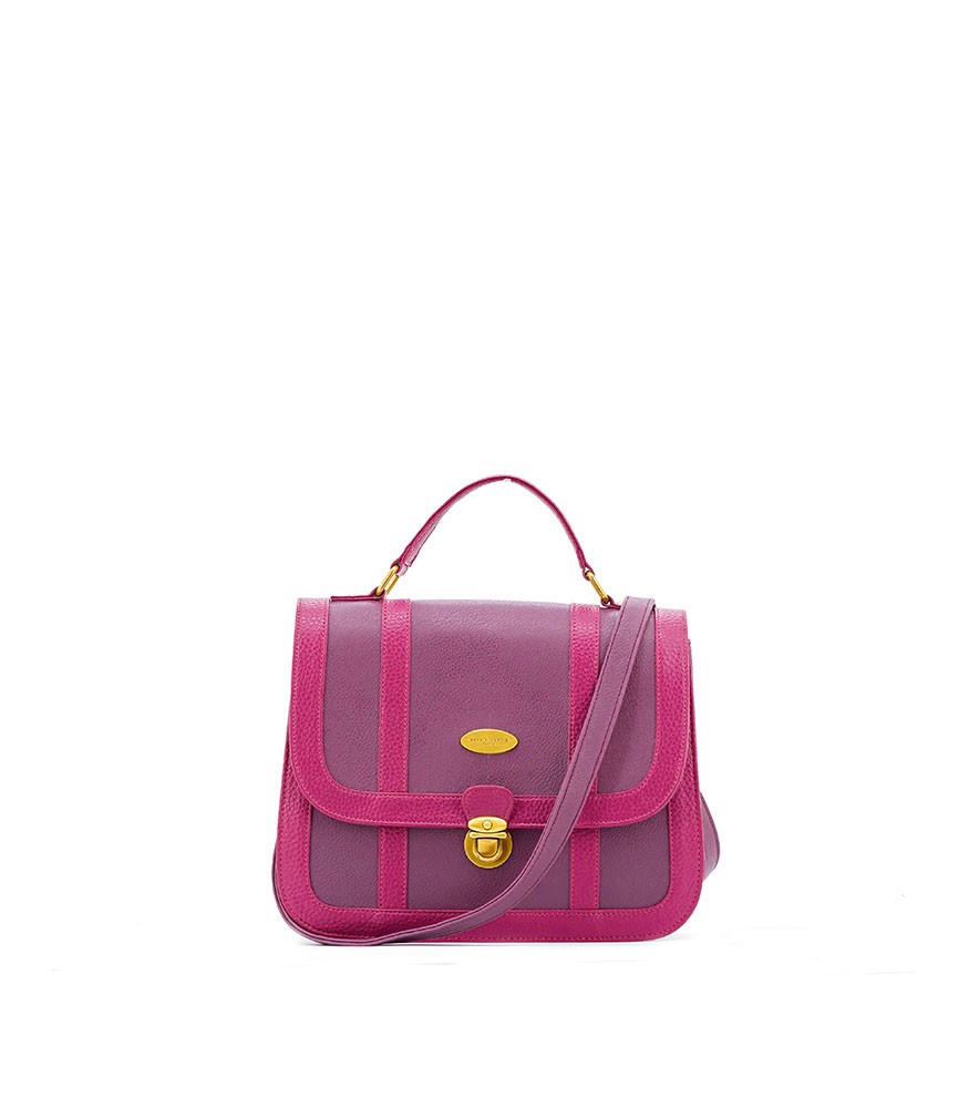 Tas selempang berbahan kulit imitasi berwarna hijau kombinasi coklat dengan kunci putar di bagian tutup flap. Terdiri dari 1 kantong resleting utama, 1 kantong di depan, 1 kantong resleting di dalam dan 1 kantong HP.