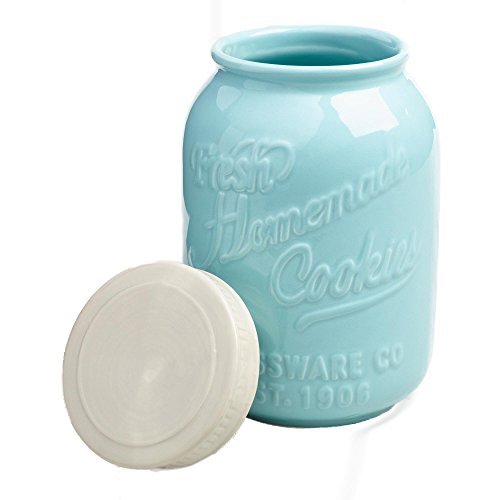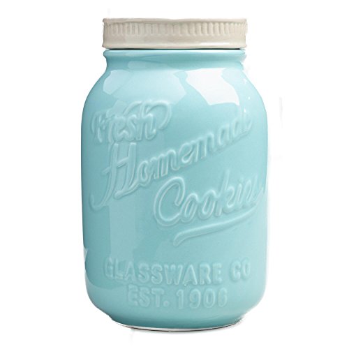 - INCLUSIONS:Includes (1) Ceramic Mason Jar Cookie Jar with tight Lid in color Blue