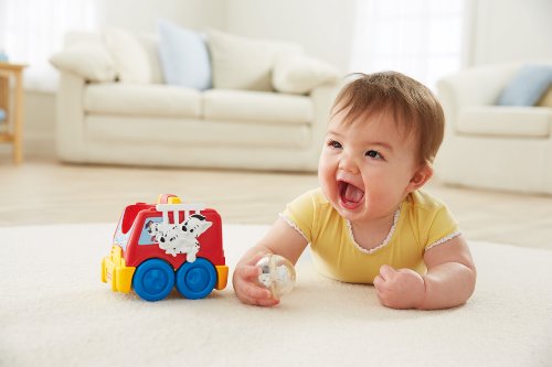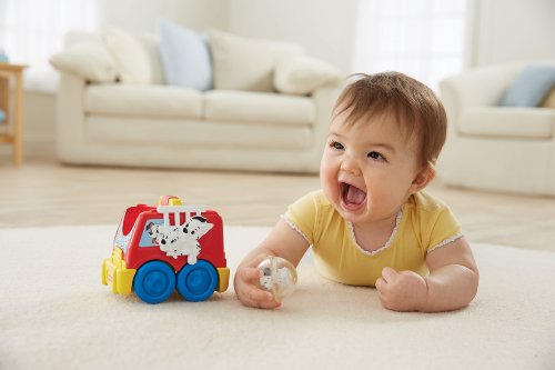 -. Feature : Your little one's imagination will grow with the Amazing Animals 101 Dalmatians Rollin' Round Fire Truck / Push along musical fire truck sure to entertain baby / Features cute puppy sounds / Baby can bat at clear roller-ball / Perfectly sized for little hands