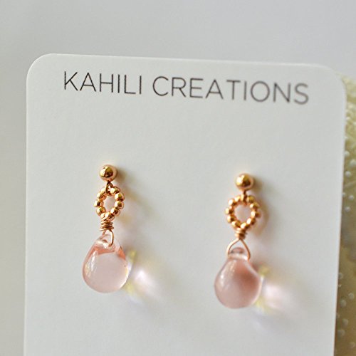-. Title : 14kt Rose gold-filled pink glass halo stud earrings