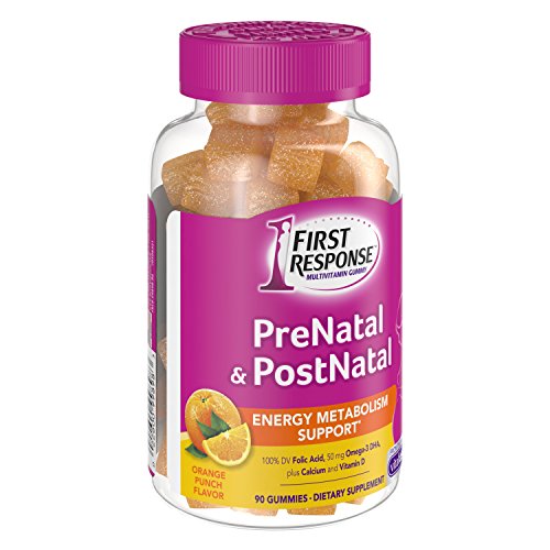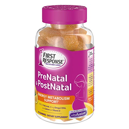You’re Pregnant or Nursing. Is your body getting the nutrients it needs? FIRST RESPONSE PreNatal & PostNatal Gummy Vitamins can help you get some of the essential nutrients you need during and after pregnancy. From the #1 selling brandƚ supporting women throughout their pregnancy journey for over 25 years, FIRST RESPONSE PreNatal & PostNatal Multivitamin Gummies contain natural flavors and essential vitamins and minerals including an excellent source of B Vitamins for Energy Metabolism Support*. First Response gummies are delicious, and with no iron, they are gentle on the stomach. This product uses high quality, purified fish oil that has been tested for mercury and PCBs. A two gummy serving of First Response PreNatal & PostNatal Multivitamin Gummies provides an excellent source of Vitamins A, C, D & E. It also provides 100% Daily Value of Folic Acid, 150 mg of Calcium and 65 mg of Omega-3 fatty acids of which 50 mg is omega-3 DHA . These delicious gummies are gluten free and have natural orange punch flavor. FIRST RESPONSE. For every step in your pregnancy journey.Feature