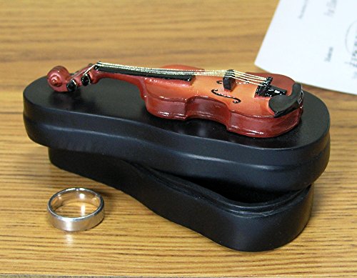 -. Feature : MINI JEWELRY BOX Violin Sitting on Black Case. Made of durable polystone. Exquisite detail, metallic silver colored strings. / DECORATIVE USES: hold jewelry, necklace, ear rings, rings. Display in a book shelf, fireplace mantel, table or desk top. / UNIQUE GIFT IDEA: give to a violin player or music lover, student, music teacher or musician. Collectible keepsake for mom, grandma, sister, daughter, granddaughter, niece, co-worker or friend this Christmas holiday season. Excellent secret Santa gift idea for work. Nice stocking stuffer. GIFT BOXED. / BOX IS lined with black felt and lid lifts off / SIZE: 4.5" x 2" x 1.75"