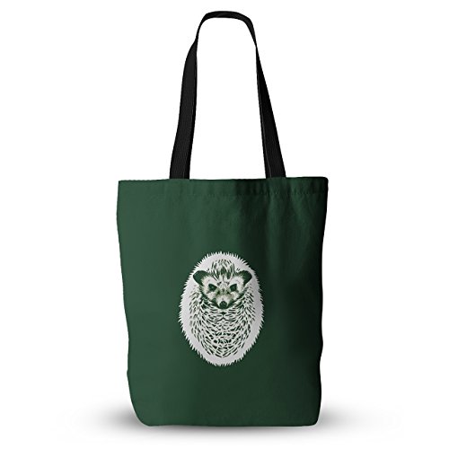 KESS InHouse BarmalisiRTB "Hedgehog" Green White Everything Tote Bag, 18" x 18", Multicolor