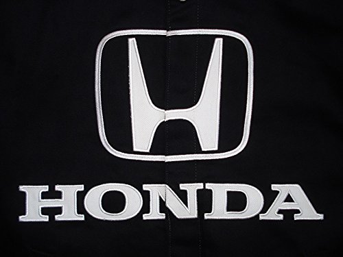 -. Binding : Apparel -. Brand : J.H. Design -. Color : Black -. Department : mens -. Feature : Shell: 14.0 oz. 100% brushed cotton twill / Lining: 100% nylon construction / Snap-front placket for easy on and off / Driver and team graphics featured on chest, back, collar and sleeves / Designed with a stand up collar, ribbed elastic waistband and cuffs for a comfortable fit -. Model : HND303BS14-BLK -. PackageQuantity : 1 -. ProductGroup : Apparel -. ProductTypeName : OUTERWEAR -. Title : JH Design Honda Racing Twill Jacket