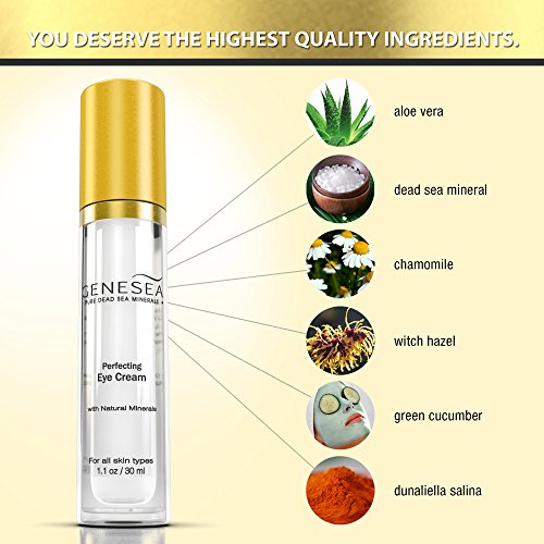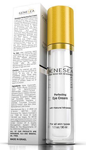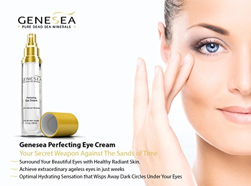 -. Binding : Misc. -. Brand : Genesea -. EAN : 6389179919738 -. Feature : Helps diminish the appearance of dark circles and puffiness - This powerful formulation will help beautify the delicate skin around the eyes area for a more radiant appearance. / The combination of Witch Hazel and Jojoba Seed Oil with rare Dead Sea Minerals helps achieve a more resilient and well-hydrated skin appearance. / Enriched with top quality ingredients - We take pride in the quality of our products which are formulated with botanical extracts, a wide range of vitamins, antioxidants as well as mineral rich Dead Sea Salt. / Airless pump packaging keeps your eye cream fresh and highly stable even after several months of use. It ensures that you use every last drop of cream inside the bottle. / This generous 50ml supply will last you 3-4 months with daily use. -. ProductGroup : Beauty -. ProductTypeName : BEAUTY -. Title : Genesea Perfecting Eye Cream Enriched w/ Witch Hazel, Dead Sea Minerals & Botanical Extracts | Helps Reduce Appearance of Dark Circles, Crow's Feet, Puffiness & Wrinkles - 30ml - 3 Months Supplies