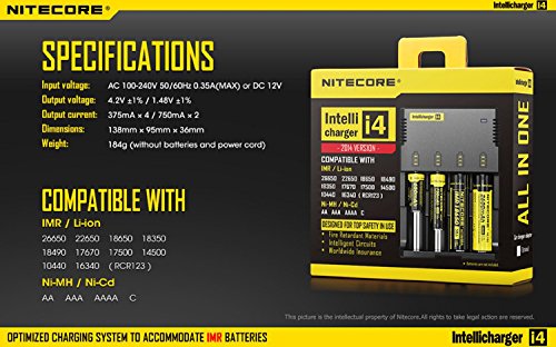 Bundle include Nitecore i4 charger, 4X Nitecore NL183 rechargeable 18650 batteries, Smith & Wesson Pathmarrker LED flashlight and 4 X EdisonBright AA alkaline batteries.