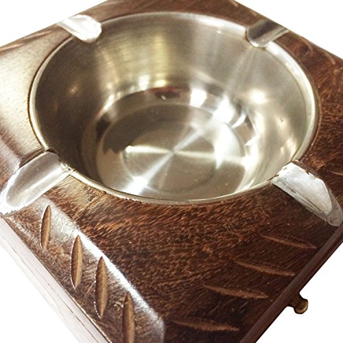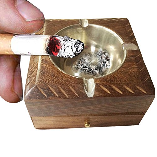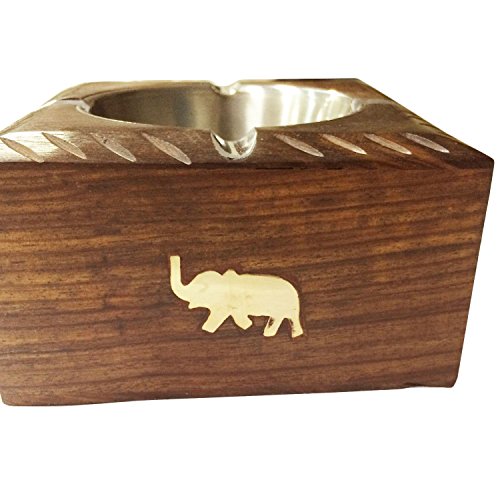 -. Binding : Office Product -. Brand : IndiaBigShop -. Color : Brown -. EAN : 0739027494591 -. Feature : Dimension : Length:4.5 Inch, Width:4.5 Inch, Heigth: 2.5 Inch / Retro/antique look wood ash tray with decorative brass motifs / The interior of this classic ashtray is a steel bowl with 3 steel inlay cigarette holder slots / Made of durable rosewood and looks great on table. Great for personal use and an excellent gift for smokers / Its Handicrafted by Strongest Sisam Wood -. IsAutographed : 0 -. Label : IndiaBigShop -. Manufacturer : IndiaBigShop -. Model : RIBS0072 -. MPN : RIBS0072-UK -. PackageQuantity : 1 -. PartNumber : RIBS0072-UK -. ProductGroup : Office Product -. ProductTypeName : OFFICE_PRODUCTS -. Publisher : IndiaBigShop -. Studio : IndiaBigShop -. Title : Indian Handmade Beautiful Designer Square Shaped Wooden Ashtray with Elephant Design Enlay & Drawer -. UPC : 739027494591