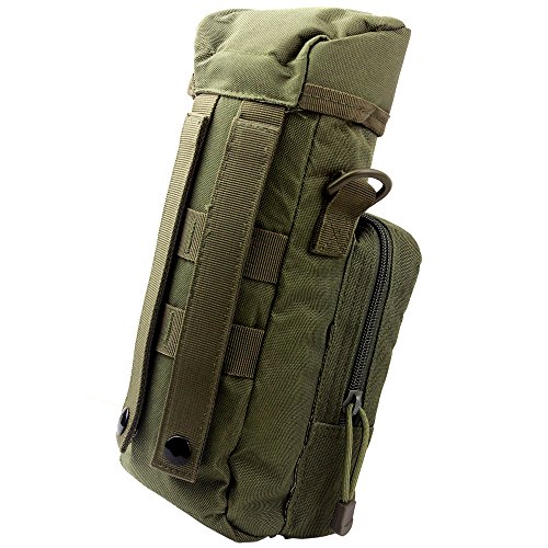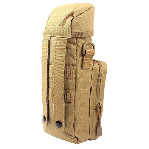 -. Feature : It's designed to hold a bottle up to 10.5" high and 4" in diameter.Can hold 32 oz Nalgene bottle with 1" to spare on top when zippered closed / Front pouch:7.25"high and 3.9" in diameter / Two 6 inch straps on the back, and D-rings on each side. Connection with the MOLLE system, you can easily use with the load on the large package, make your backpack more personalized and practical, but also can be hung on a belt / Buckle can rotate 360 degrees, self-adjusting to the most approP.R.Iate angle, more personal durable / Ship packet with a tracking number,very fast!
