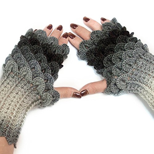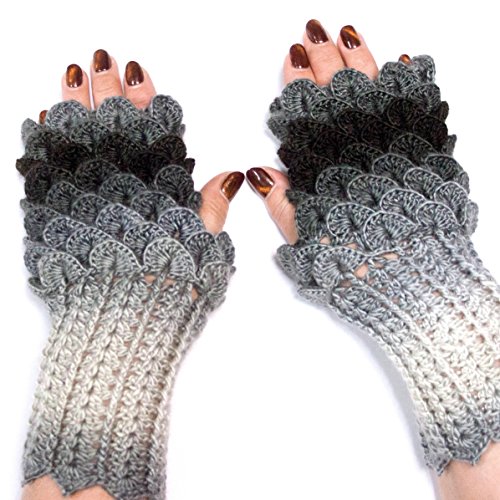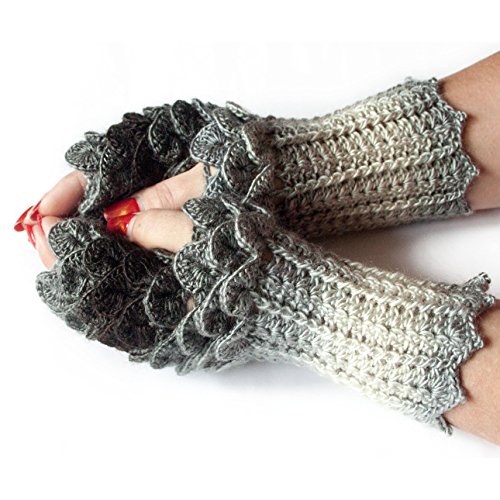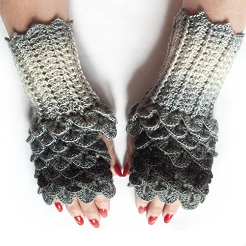 Binding : Apparel Product Description Dragon Fingerless Gloves, Scales Gloves, Dragon Mittens, Hand-knitted Fingerless Gloves, Holiday gifts for all of you and your family ones. Winter accessories for women - Warm and soft. Ideal for cold winter days. It is designed for comfortable and stylish usage. Size is suitable for women. They are hand crochet in crocodile stitch which gives extra warmth over the hands. All of these mittens have a thumb opening for a good fit. Our products are one of the same pictures. (Please note that light effect, monitor's brightness, contrast etc. may cause a slight color difference, on.) 1st class materials were made with the soft wool and acrylic - Wool (49%), Acrylic (51%) Wash at maximum 30'C / Do not bleach / Dry cleanable Iron at medium temperature / Do not tumble dry Iron on reverse / Wash garment inside out The item will be carefully packed and shipped via Airmail from Ukraine within 1-4 days of purchase. 0