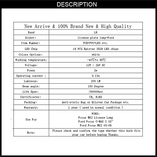 LEIHUANG 2x LED License Plate Light For FORD FOCUS 5D 08-2013 FIESTA MONDEO C-MAX S-MAX
