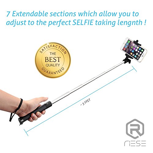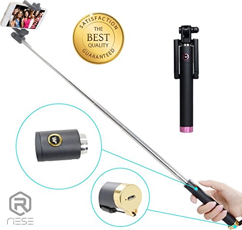 Selfie Stick Bluetooth Foldable Pocket Size - Pink Selfie Stick for iPhone 6 +, 6s Plus, 5, 4, Samsung Galaxy S6 Edge, S5, S4, Note 5, Note 4, LG, HTC & Others (Black/Pink)