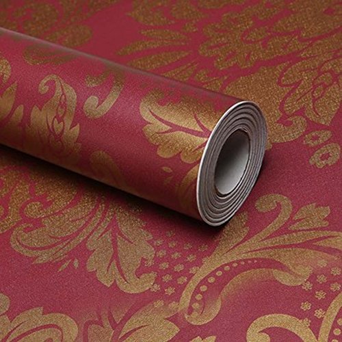 -. Title : SimpleLife4U Red Golden Damask Self-Adhesive Shelf Drawer Liner PVC Contact Paper 45x300cm