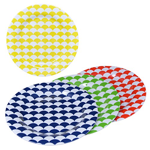 Clever Home Set of 4 Melamine Plates with Multi Color Scallop Design
