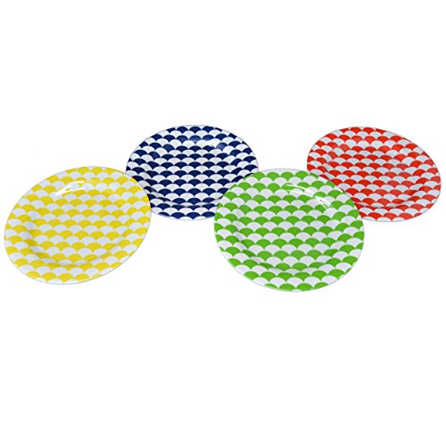 (Clever Home)/Kitchen Dining/Tableware/DIRECT FROM USA/Clever Home Set of 4 Melamine Plates with Multi Color Scallop Design (8 in Round Dessert Plate,...