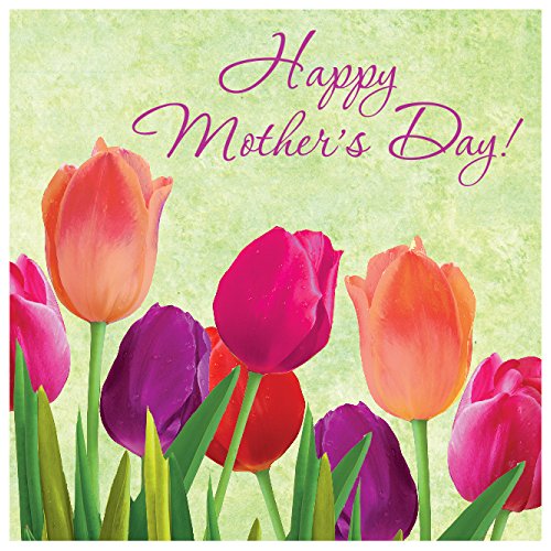 Creative Converting 16 Count Paper Spring in Bloom Mothers Day Lunch Napkins, Pink/Coral/Purple/Green