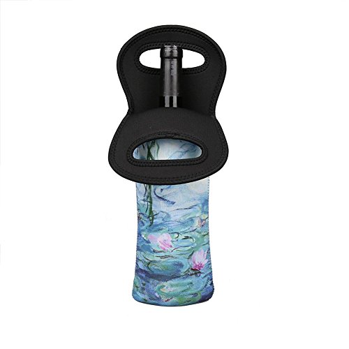 E-Living Neoprene 3-in-1 One Bottle Wine Tote for Champagne / Wine / Beer Bottles - 3 Designs with Van Gogh / Monet Oil Painting Masterpieces (2, Water Lilies)