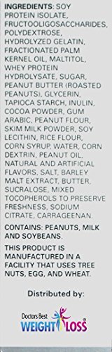 -. Binding : Health and Beauty -. Brand : Doctors Best Weight Loss -. EAN : 0635797996689 -. Feature : Low Calorie - 140 calories per bar | High Protein - 15 grams per bar / High in Fiber - 10 grams per bar | Low Sugar - 3 grams per bar / Sold in Many Doctors Offices | Medical Grade / Free Shipping Over $69.99 -. IsAdultProduct : 0 -. Label : Doctors Best Weight Loss -. Manufacturer : Doctors Best Weight Loss -. MPN : 635797996689 -. PackageQuantity : 7 -. PartNumber : 635797996689 -. ProductGroup : Health and Beauty -. ProductTypeName : HEALTH_PERSONAL_CARE -. Publisher : Doctors Best Weight Loss -. Studio : Doctors Best Weight Loss -. Title : Doctors Best Weight Loss Premium - High Protein Diet Bar |Peanut Butter and Smooth Caramel Crisp| High in Fiber, Low Calorie, Low Sugar (7/Box) -. UPC : 635797996689