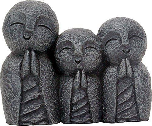 3 Inch Jizo Monks Smiling Statue, Dark Grey Desk and Shelf Decoration