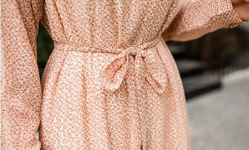 全体に散りばめられた小花柄やウエストリボンが女の子らしさあふれるアイテム☆