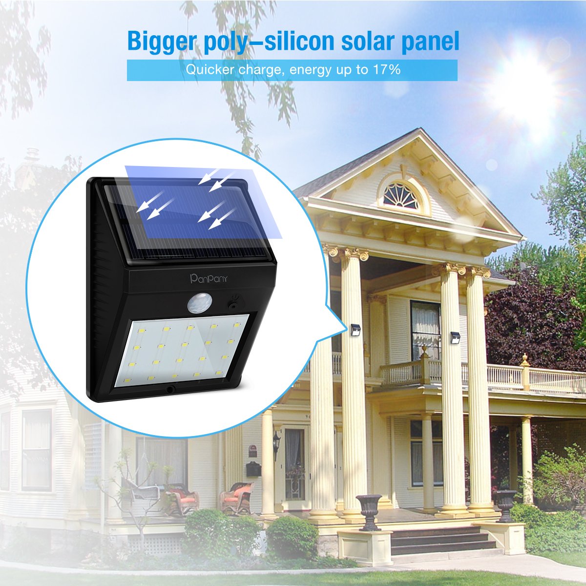 Through improving the solar panel, it becomes brighter than before and the range of lighting becomes wider.