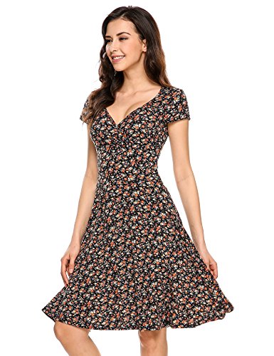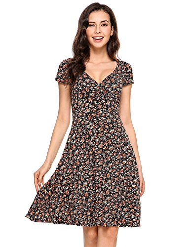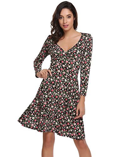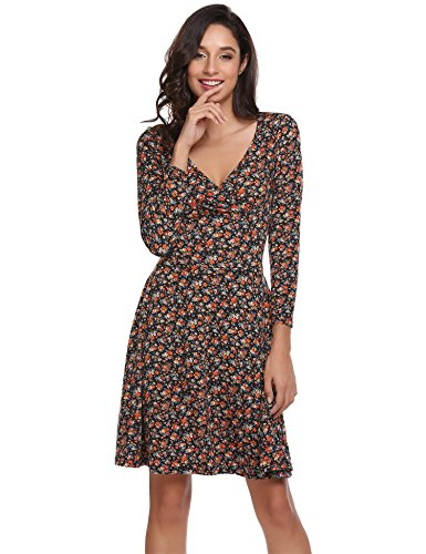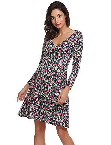 Deep v-neck, wrap front design, flower printed country style, pull on closure