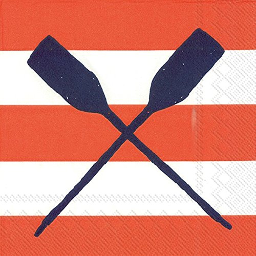 Boston International 20 Count Yacht Club 3-Ply Paper Cocktail Napkins, Coral Oars
