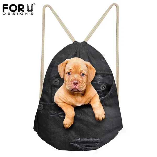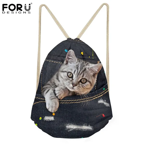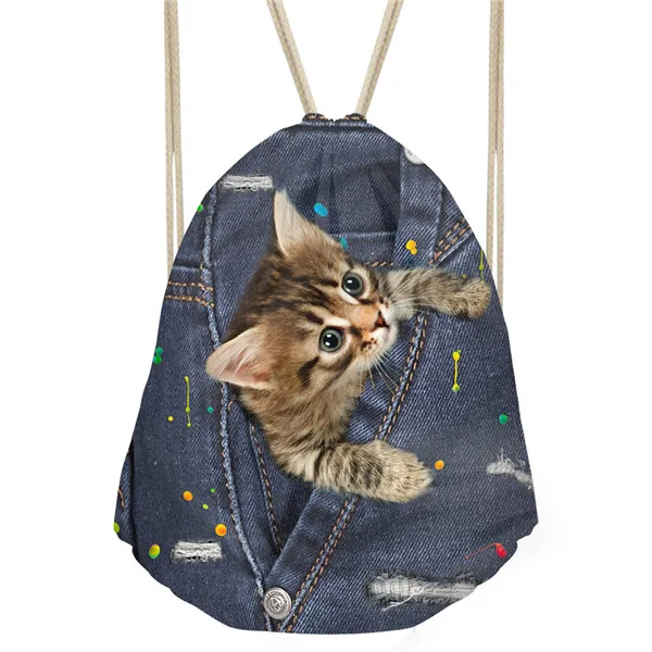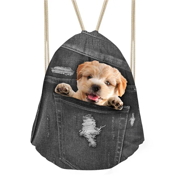 Item:3d Cute Cowboy Pet Cat Dog Pattern Women Backpack Small Drawstring Bag