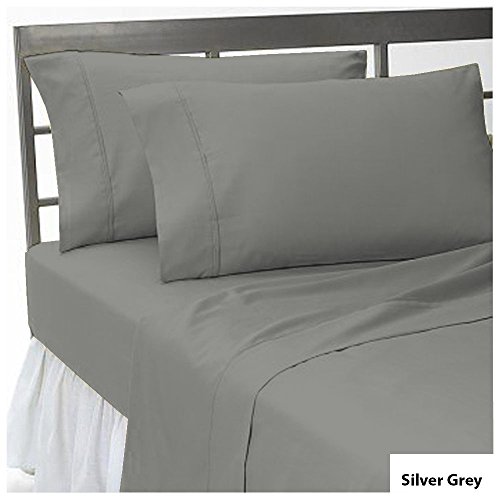 100% Egyptian Cotton USA Bedding Sheet 8 inches Deep Pocket 1 Piece Fitted Sheet Solid 450 Thread Count Size Queen Color Silver Grey