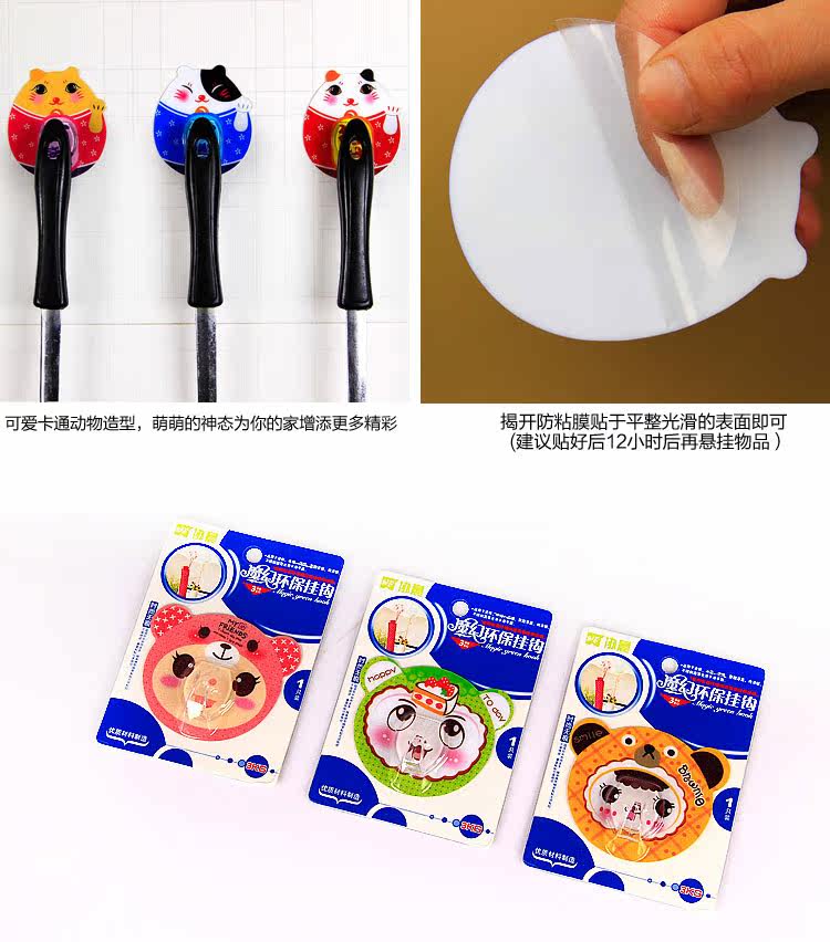 品名:卡通魔力无痕挂钩 强力吸壁粘钩 浴室瓷砖粘贴无粘胶