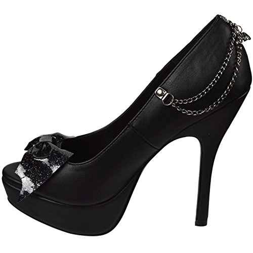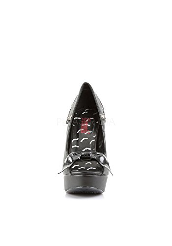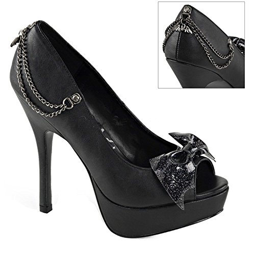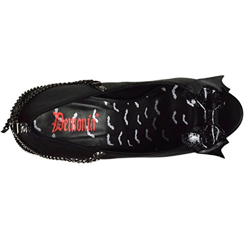 Binding : Apparel Product Description Alternative, defiant, and nonconforming enthusiasts need look no further than Demonia for the most cutting-edge, beyond-the-ordinary line of footwear. Its original meaning and connotation of demonic diva is by no means gender exclusive. Demonia not only reflects the alternative lifestyle, it defines it. This Pixie 16 Pump feature platform, pep toe, glittery bat bow on vamp and bat charm chains swinging at back. Heel height: 5 1/4' (13.25cm). Platform height: 1 1/4' (3.25cm). Material: Vegan Leather. 0