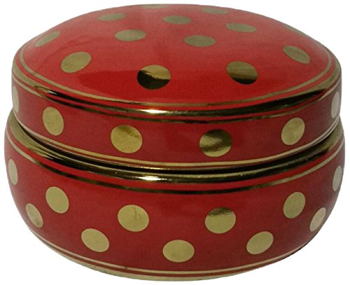 Benzara Alluring Ceramic Covered Dotted Jar Decorative, Red/Gold