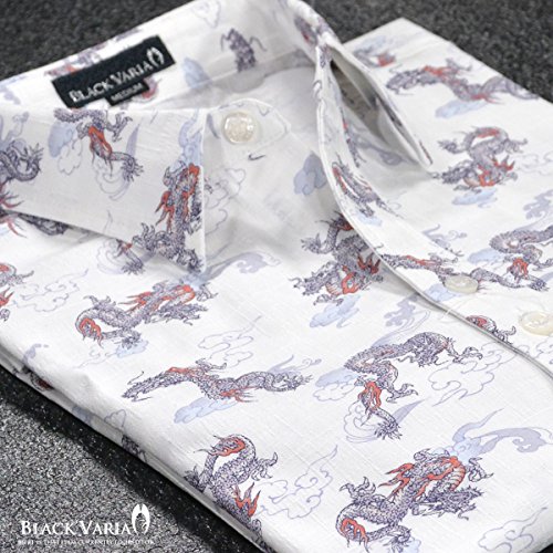-. Title : (ブラックバリア) BLACK VARIA シャツ 龍 ドラゴン 和柄 レギュラーカラー アロハシャツ アロハ 長袖シャツ ホワイト白 935126