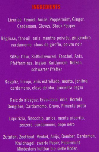 -. Feature : Naturally Caffeine Free / Certified USDA Organic / Ingredients: GB Licorice, Fennel, Anise, Peppermint, Ginger, Cardamom, Cloves, Black Pepper