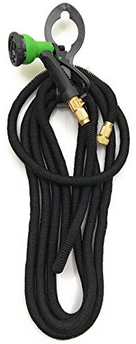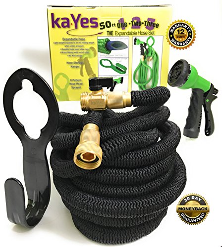 kaYes Expandable Hose Kink Tangle Free - Garden Hose Storage Hanger Lawn Spray Nozzle 3 Pc Set Solid Copper Brass Fittings Steel Clamp Strong Flexible Expanding Gardening Hose Auto Lawn Plant Watering