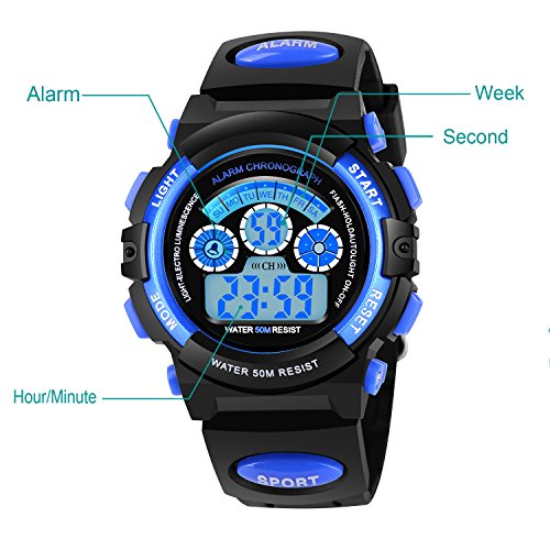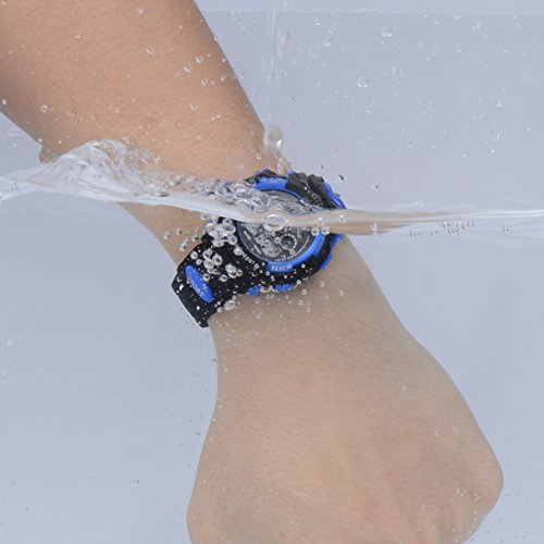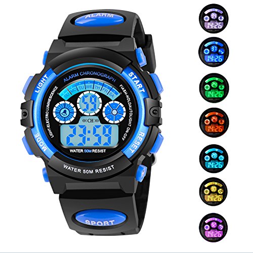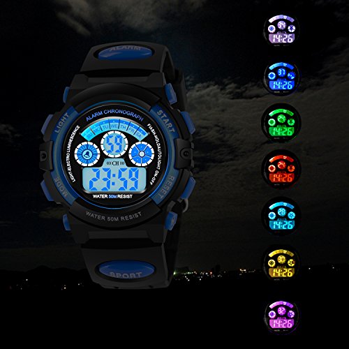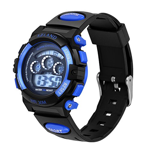 AZLAND 7 Colors Flashing Waterproof Outdoor Sports Kids WristWatch Boys Girls Digital Watches Blue