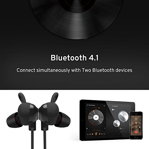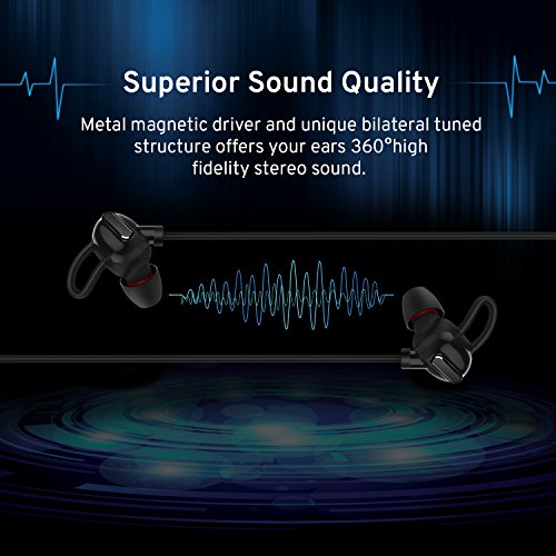 -. Feature : Crystal Clear Sound Quality : Equipped with powerful metal magnetic driver and improved noise isolating CSR8640 chip, these earbuds are able to deliver super rich bass and crystal clear treble; The unique bilateral tuned structure offers your exquisite pleasure of good mids and bass music / Better Connectivity and Performance:The bluetooth 4.1 technology and apt-X tech guarantees fast and better stability with a 33ft effective connection range; Improved high stability and compatible with all Bluetooth-enabled laptops, smartphones, and music players; Built-in mic for hands-free calls / The Rechargable Long Battery Life: With advanced 120mAh lithium-ion battery packs and smart charger circuit operation, ensure the battery charging full,durable; 2 hours charge time, 6-8 hours continuous play time, 400hours standby time, long enough for mucic and phone call with the fashion stylish blutooth headsets / IPX4 Water Resistance: Bluetooth headphones chip with internal nano-coating treatment and water resistant shell offer a double layer of water or sweat resistant protection. You can run in the rain or sweatproof in the gym to enjoy the music or phone communication freely / What you get:Accessories and Customer Service: Tune 2 Bluetooth earphones, Micro USB charging cable, User Manual, S/M/L Earcaps, our worry-free 18-months warranty and friendly customer service